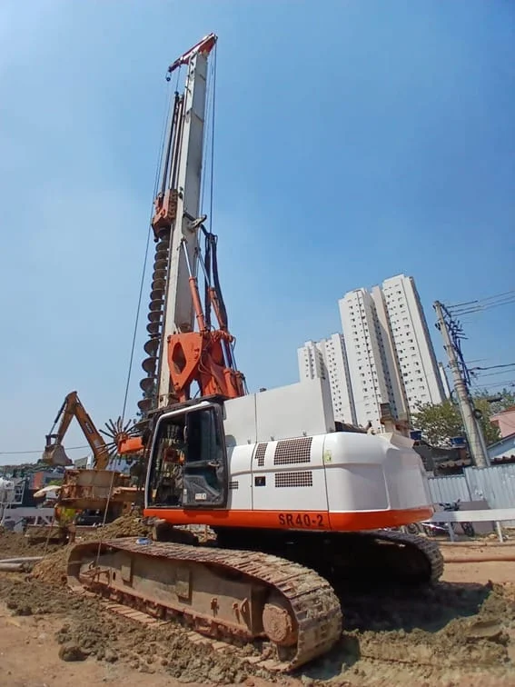 A Perfuratriz SR-40-2, fabricada pela Soilmec em 2009, é uma máquina de perfuração potente e versátil. Equipada com o motor CATERPILLAR C-7, sua potência de saída é de 187 kW a 1800 rpm, oferecendo um torque máximo de 147 kNm. A máquina possui uma capacidade de perfuração de 17,50 metros com trado, podendo alcançar uma profundidade máxima de 23,00 metros. Com 21.339 horas trabalhadas, passou por uma manutenção preventiva recente, realizada em 20/09/2024, e encontra-se em excelente estado de conservação, sem avarias.